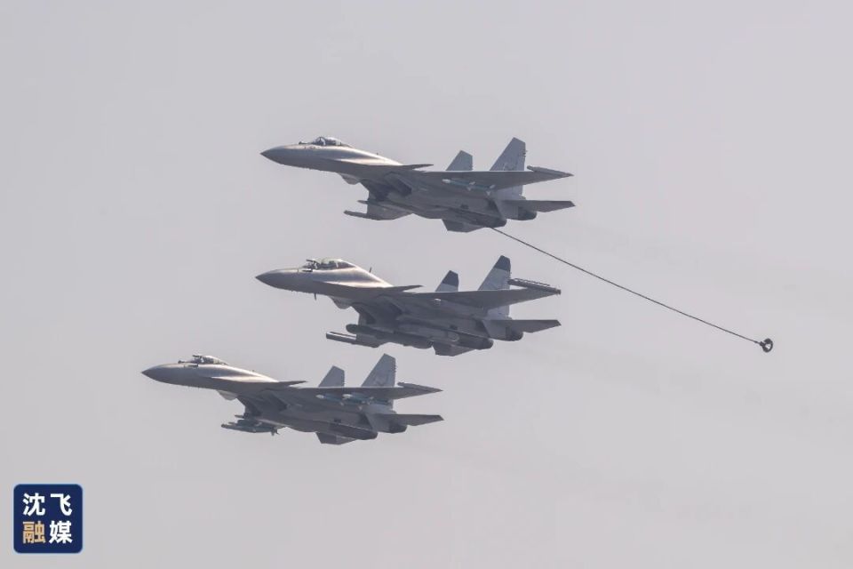 第十五届中国航展,歼15系列,三“鲨”同框,炫舞蓝天,演绎“空中芭蕾”,在飞行表演中展现出惊人的机动性能,飞行表演吸睛无数、让人目不暇接,充分展现了人民海军的威武自信。