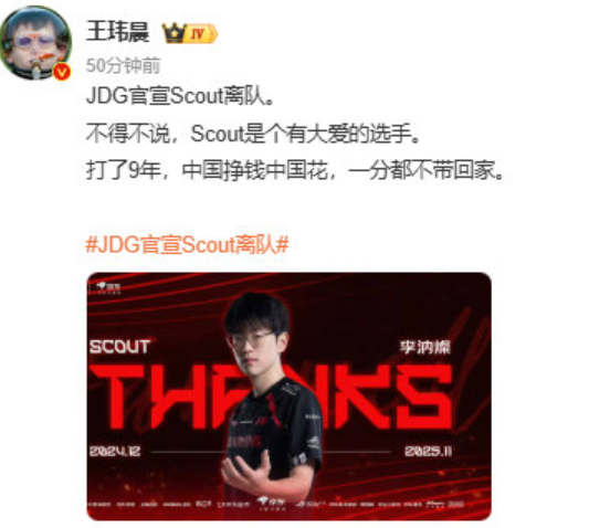 知名圈内人爆料,scout回归LCK没带走一分钱,所有积蓄全赔给EDG,在转会期的风口浪尖上,选手动向总能掀起无数讨论,而近期围绕Scout的热议更是将话题推向新的高潮。随着“某圈内人爆料Scout回归LCK没带走一分钱、所有积蓄都赔给EDG”的说法在社交平台传播,舆论开始热烈讨论这位昔日LPL功勋中单的境遇。媒体人王玮晨一句“Scout是个有大爱的选手,中国挣钱中国花”,更让这个话题增添了几分调侃意味。