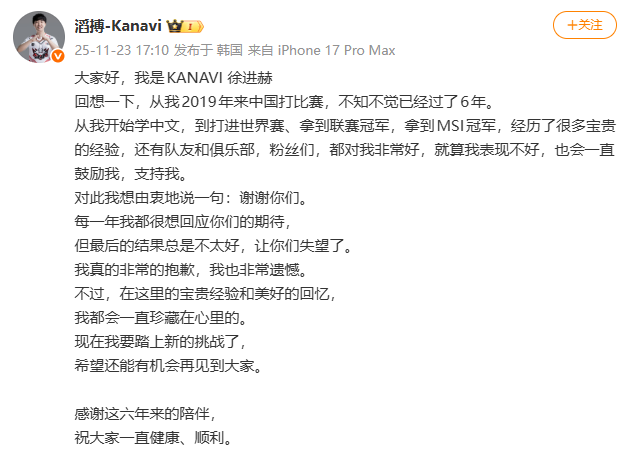 两位顶级韩援被骂回LCK,临走时发文道歉:我真的非常的抱歉