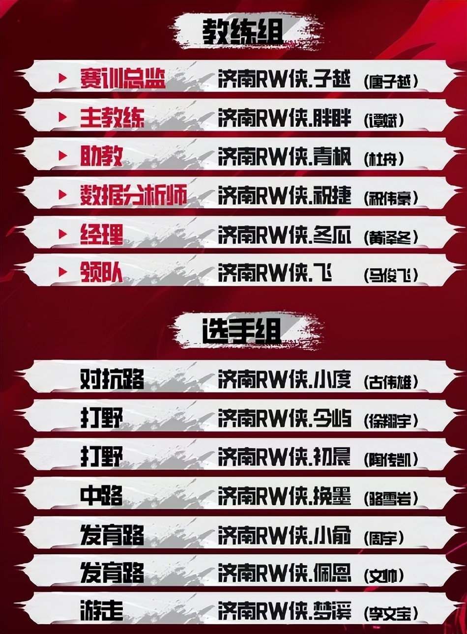 济南RW侠这次是全面换人,fly解约成为自由人,所有选手都更新了一遍。首发应该就是小度今屿挽墨小俞和梦溪,这个五人组的强度感觉是有A组水平,但是主教练胖胖可没带出过什么成绩,赛训组还是有点薄弱。他们第一轮获胜应该问题不大,但整个2组我还是更看好JDG。