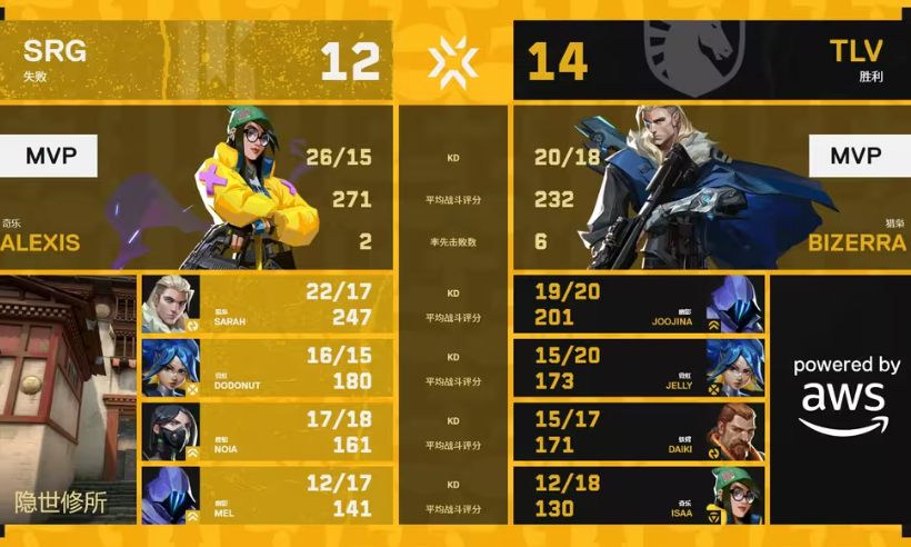 Jelly以20个击杀(使用霓虹)成为本图击杀王,但最闪耀的依然是daiki。这位巴西指挥在整个系列赛中以身作则,交出了47/40/19的KDA、1.25的评分和4个残局胜利,持续领跑本届赛事选手评分榜,同时展现了强大的指挥能力。Liquid女队终于完成了复仇,但SR女队仍有希望,她们跌入败者组决赛,明天将对阵MIBR。胜者将获得在最终总决赛中再次挑战Liquid的权利。