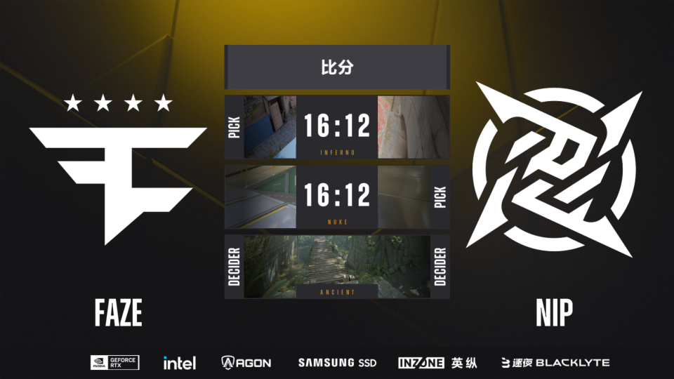 2-0组:FaZe 2-0 NIP,三战全胜晋级第三阶段!
