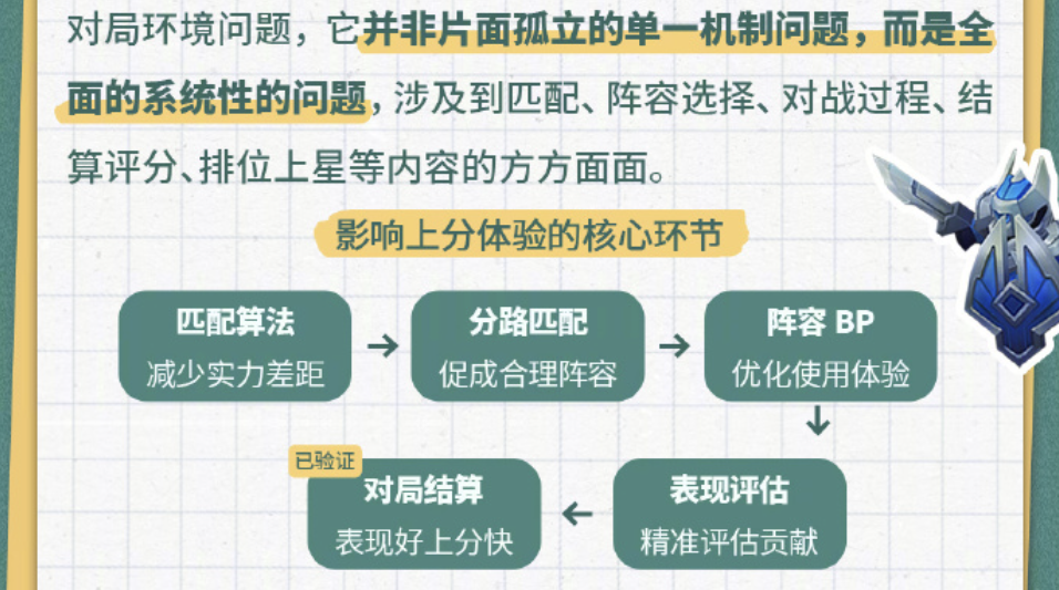 在去年8月的一次公开沟通中,策划团队如此总结道:「对局环境问题,它并非片面孤立的单一机制问题,而是全面的系统性的问题,涉及到匹配、阵容选择、对战过程、结算评分、排位上星等内容的方方面面。」因此,这次匹配机制的大改仍然以提升玩家体验为最终目标,将更多的「方方面面」联系起来一起配合调整,从而更全面地迎合玩家需求。