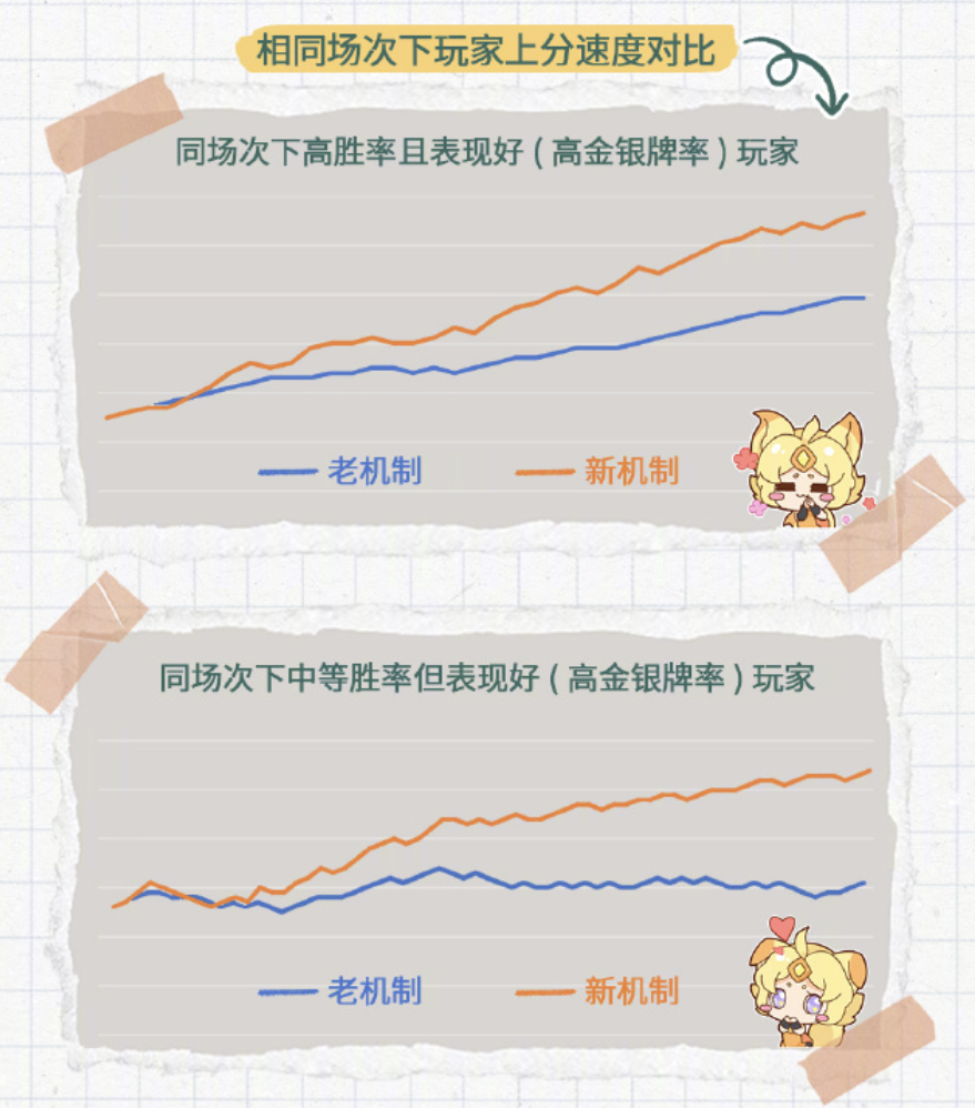 这样匹配的优点在于,外部显示的段位能够更反映玩家的实际水平了。此外玩家客观上有比较均匀的机会匹配到段位内的平均水平,因此水平显著高于当前段位的玩家,能够更快速顺畅地上分了。根据此前测试服的数据,新的匹配机制确实大大缩小了同局玩家之间的段位差异。玩家将绝大部分凭借自己的实力上分,也会更符合大家对竞技游戏的期望。