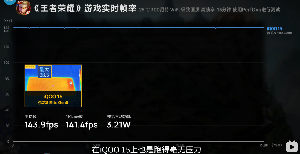 这种投入的成果很直观。搭载了骁龙888的iQOO 8曾首发《王者荣耀》120帧模式,而如今搭载第五代骁龙8至尊版的iQOO 15,则成为了首款运行《王者荣耀》原生144帧+极致画质的手机。
