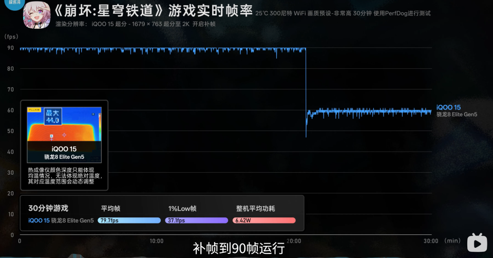 从测试跑分数据来看,144帧模式下《王者荣耀》的实时帧率平稳得近乎一条直线。毕竟对于第五代骁龙8至尊版这颗芯片来说,运行《王者荣耀》时跑满144帧算得上是基本操作。哪怕是面对《崩坏:星穹铁道》《鸣潮》这类高负载游戏时,这套硬件组合也同样撑得住场面。