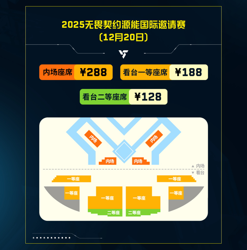 内场座席 288 RMB丨看台一等座席 188 RMB丨看台二等座席 128 RMB