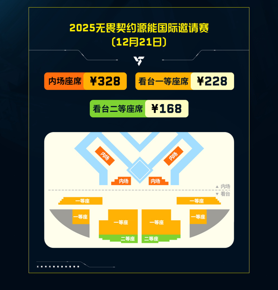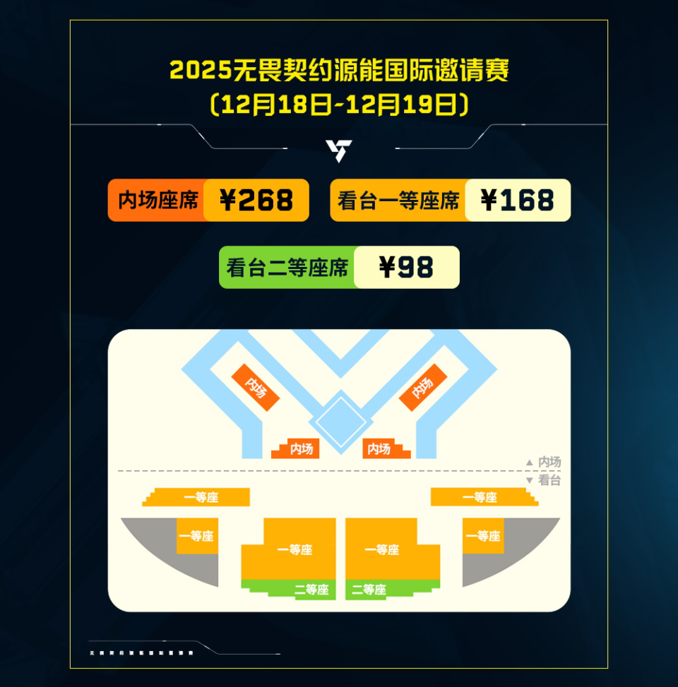 2025 无畏契约源能国际邀请赛(12月18日-12月21日)单日票将于2025年12月2日14:00开启售卖,且单日票的售卖截止时间为相应赛日的开赛时刻前24小时。