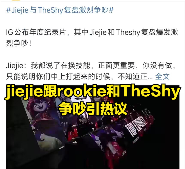 近期LPL电竞圈最热门的事件,应该就是IG官博发布了一则,时长为49分钟的年度纪录片。在这个视频当中,有很多IG内幕得到曝光,比如说打野JIEJIE曾经因为比赛内容问题,跟中单ROOKIE和上单TheShy进行过争吵(JIEJIE质问TheShy为啥不留技能来正面打团,而TheShy表示自己被对面多人单放,自己不能留技能去先手开团)当然ROOKIE本人也是坦言,赛后选手发生争执是正常现象,因为每位选手都非常想赢比赛,所以才会吵架。