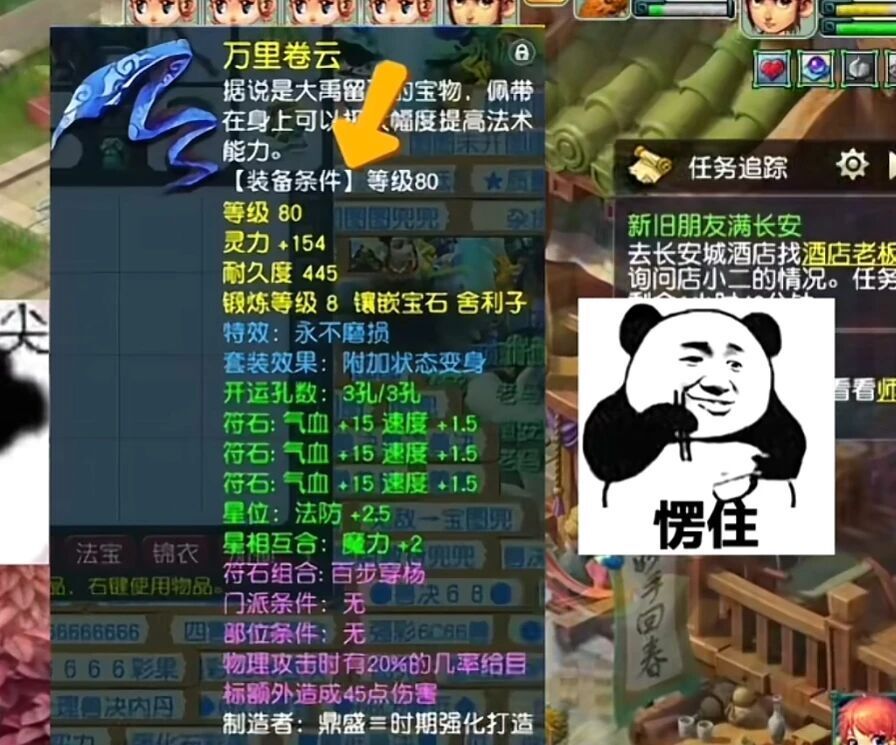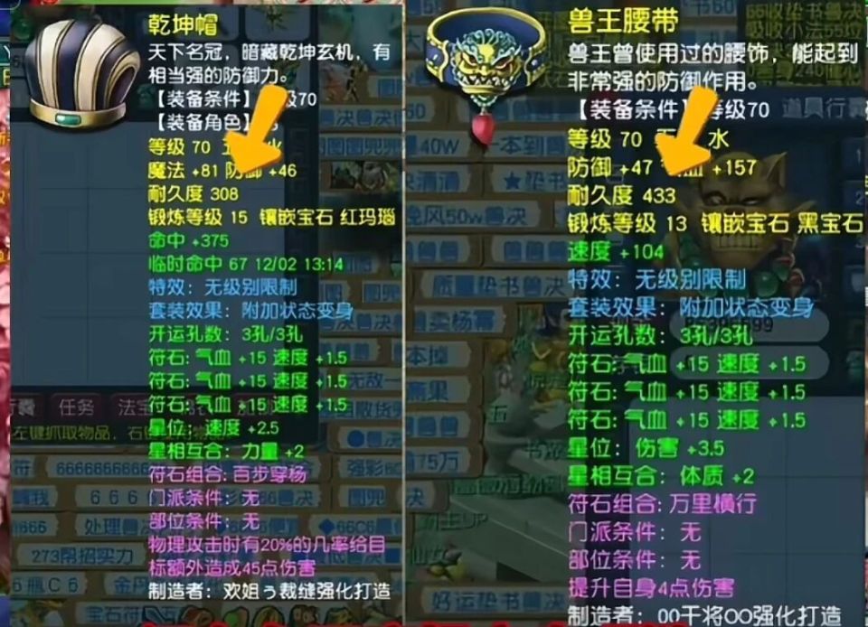 最牛的就是在整个齐天大圣遥遥领先的装备,70级的无级别男头,打了15段的红玛瑙,还附加变身套。70级的无级别鞋子,打了13段黑宝石,还附加变身套。