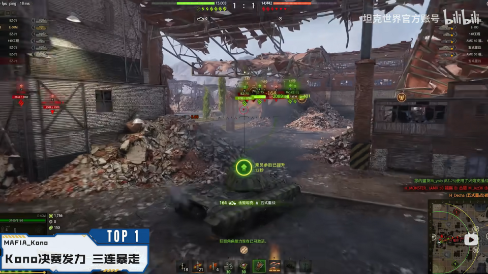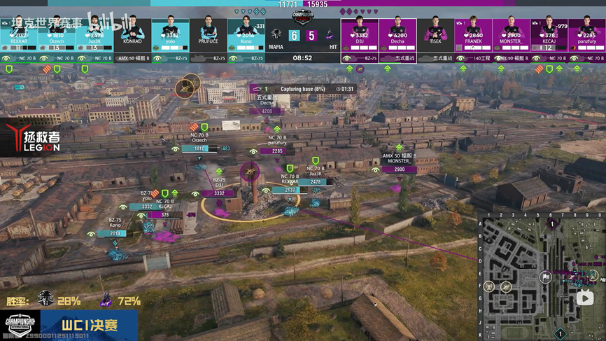 到了第十三局暨决胜局,MAFIA的表现则更胜一筹。游走在外的KONO选手驾驶E50M,来了个连续三杀。他首杀五重,为旗圈中的队友减轻了压力。