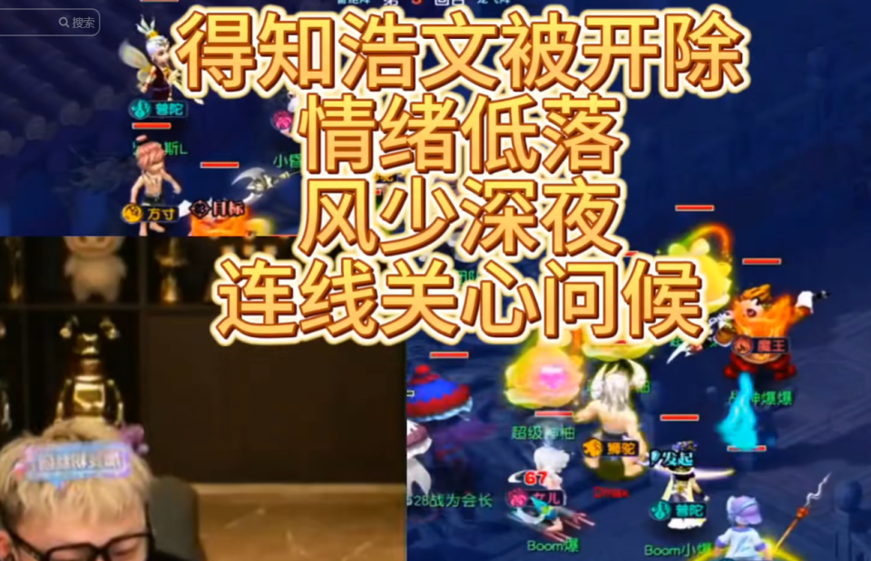 起因是跟浩文明确说不打剑会,这是周一功夫之王时浩文亲口说的,传媒的其他操作手都在,周三又让麻包包带着去打剑会,关键是周一到周三这么长时间没人跟浩文说这个事,周三晚上问浩文都懵了,连个礼貌性招呼都没有,这就是传媒干的事,第二天秦风也一起上号玩了,然后浩文在那里自己开皮说被开除。晚上宝哥开播都说了不知道。