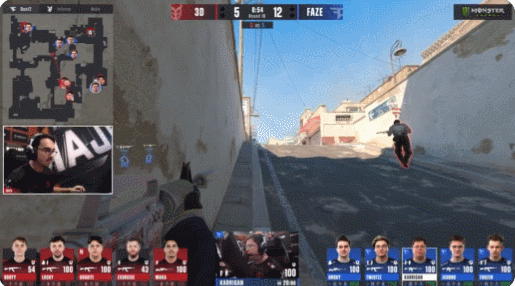 图一Dust2,0-3开局的FaZe在寒王、大表哥状态起势后打出一波7-2结束半场,换边FaZe赢下手枪局,战舰四少全员发威,FaZe连下5局手握赛点。不过大表哥枪口怼Maka脑袋上开枪被对方反杀,法国队拿到进攻首分,但也仅限于此,FaZe轻松先下一城。