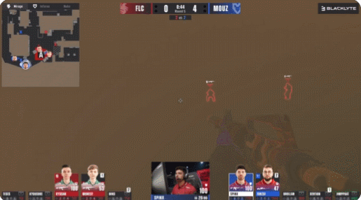 图二Inferno上半场吉米、托神和Spinx完成3V5,托神又在B区拿下几乎不可能的4杀、1V3残局。而猎鹰在龙哥一枝独秀的表现下也顽强追分,双方打成4平、5平。随着托神和吉米再拿下2V3,半场MOUZ领先两分。换边硬脚蟹双枪3杀再拿手枪局,Spinx连接凹槽3杀,硬脚蟹在B不动如山,MOUZ连守6分扳回一城。