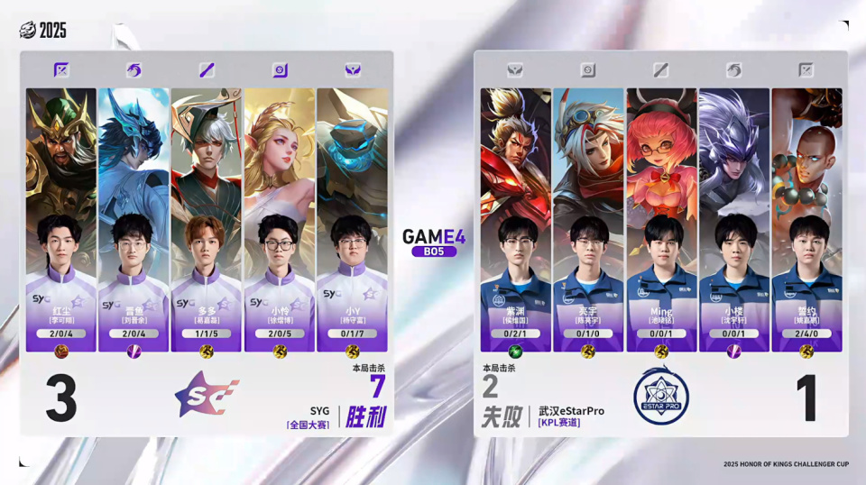 SYG作为全国大赛的冠军,选手们主要是WB的青训,实力都不差的,教练战神健也当过KPL战队的教练。下一场面对青训破军,可能也是身价之战了。