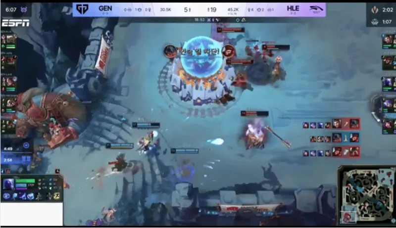 这GEN压根就没有把KeSPA杯当一回事,当家的Canyon,Chovy和Ruler都没有参加比赛。结果就是GEN被日本,越南,LCK队伍轮番欺负。20分钟,HLE轻松攻破GEN上路高地;最终22分32秒,HLE轻松一波。