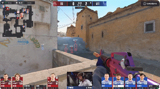 图二Dust2,Vitality粉碎A小攻势赢下手枪局4-0开,长枪局绿龙夹B得手拿到首分,而后zweih沙地开转3杀,sh1ro在B洞顶烟双杀,donk中远秒沙地大狙4杀,半场双方握手言和。换边绿龙拿到手枪局8-6,长枪局chopper背身法玛斯描边助薯薯赢下关键残局。而后大黄蜂进攻接连瞬间融化对手,chopper和sh1ro的防区形同虚设,绿龙兵败如山倒连丢6分止步四强。