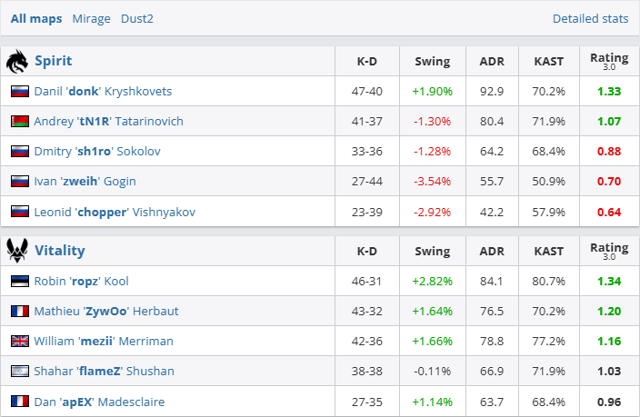 Vitality在2025年对阵Spirit保持着不败金身。”
