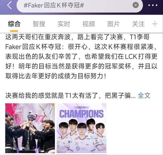 随着T1击败HLE拿到K杯冠军后,T1中单Faker也在赛后采访环节当中,公开回应T1突破历史夺冠的感受。Faker表示本届K杯的比赛赛程很紧凑,能够在K杯当中夺冠全靠队友的发挥出色,同时希望T1明年能够拿到更多的冠军,来回馈粉丝们的喜爱。(不得不说T1能够在K杯夺冠确实不可思议,毕竟T1前不久还在沙特接商业活动)