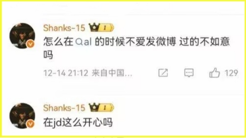 AL今年转会期,不仅没留住Tabe,连助教都跑去京东了,小白教练近日发微博,分享自己带狗子剪头发做造型的日常,前队员香克斯,突然跑到微博下质问:在JDG这么开心吗?怎么在AL的时候不发爱微博?过的不如意吗?好家伙这一波三连问,可以实锤香克斯,是AL里最大的串子了。