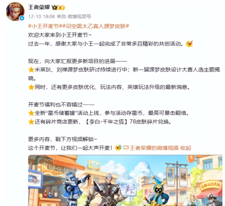 最后说一下王者最近的开麦节,老玩家们都清楚的,每次这个时候,福利是不会少的,比如这一次,全新的“星币储蓄罐”活动上线,参与活动存星币,最高可暴击翻倍。还有碎片商店更新,【李白-千年之狐】78皮肤碎片兑换,喜欢李白的玩家们不容错过。