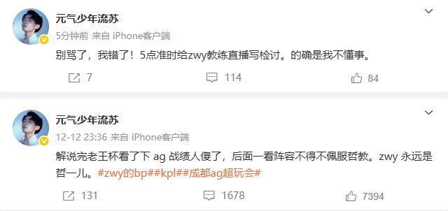 AG4:3险胜RNGM那晚,前职业选手流苏顶着AG职业认证的名头,在WB上公然“炮轰”AG战队主教练zwy,说他BP不如久哲的同时,更是直接表示zwy就是“哲一儿”。