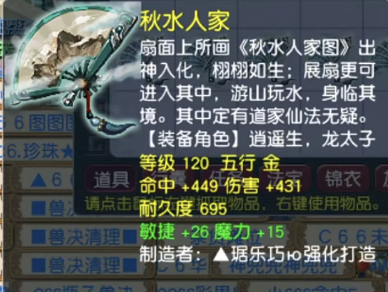 齐天大圣出了120级的扇子,伤害+431,魔敏双加41的扇子,这个龙宫可以用!