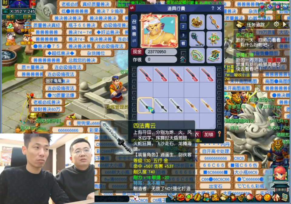 在【齐天大圣】服务器,旭旭宝宝与毕总的鉴定成果平平,始终未能获得理想的武器。真正的亮点出现在毕总位于【龙拳】服务器的角色上,旭旭宝宝为其鉴定出一把初总伤706、附带耐敏38的不磨剑,属性不俗,足以让使用者在龙拳服务器称雄一时。