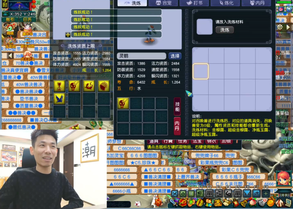 真正的重头戏在于洗练变异灵鹤。按照多位神豪的经验,为此投入百亿梦幻币也属常见。旭旭宝宝虽自信能以低于市场价(约40亿)的成本达成目标,但现实却给了他小小打击——直至下播,他与大斌子已花费超过20亿,仍未能如愿收获5技能BY灵鹤。