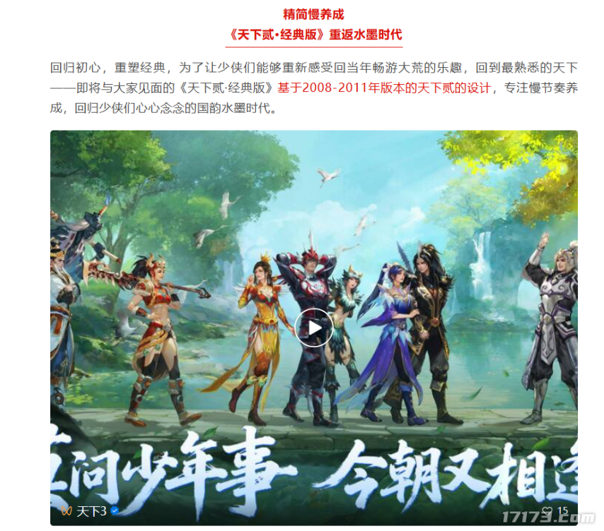 这也是为何在现如今《天下3》即将升级为《天下:万象》的节骨眼儿上,官方会再次找来韩庚代言,并推出“万象版”与“经典版”两个并行版本原因。