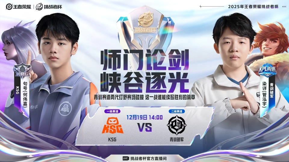 第一场,是两代青训野王正面对决!KSG在本届挑杯围绕中野重建,虽然纸面阵容初看并没有给人太高的期待值,但在实际比赛开打之后却观感极佳。首轮3-0轻松战胜了他们的苦主狼队;16进8对阵DYG的首局翻车之后,连续打出4局碾压带走比赛。