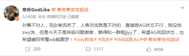 偏偏争议缠身,因为对阵RNGM的BP,被流苏称作哲一儿,教练组奶茶出来声援,战文欲还发表情微博办公,本来就让粉丝不满,觉得对选手的攻击管不了,对教练就能护着。