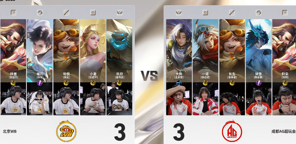 回顾双方的巅峰对决阵容,WB也是出了奇招,大司命没有拿,直接锁定了元坦,还有艾琳,而AG这边,也没有用公孙离了。但是此战输了之后,AG的盾山曹操组合确实要被批评了,明明版本答案摆在这里,就是不拿,输了也不冤。