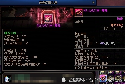 [组队]司南入场未央幻境地下城只会消耗队长的司南,队员只需要满足入场的玉荣力条件。