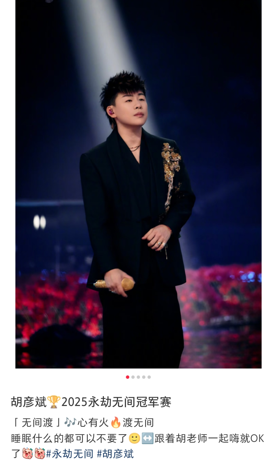 第二天的三排赛同样精彩。胡彦斌先后献唱《你要的全拿走》《敬自己 不为谁》为选手助威。特别是当《永劫无间》与《盗墓笔记》的联动主题曲《无间渡》响起时,高亢的唢呐声瞬间把场子热了起来。