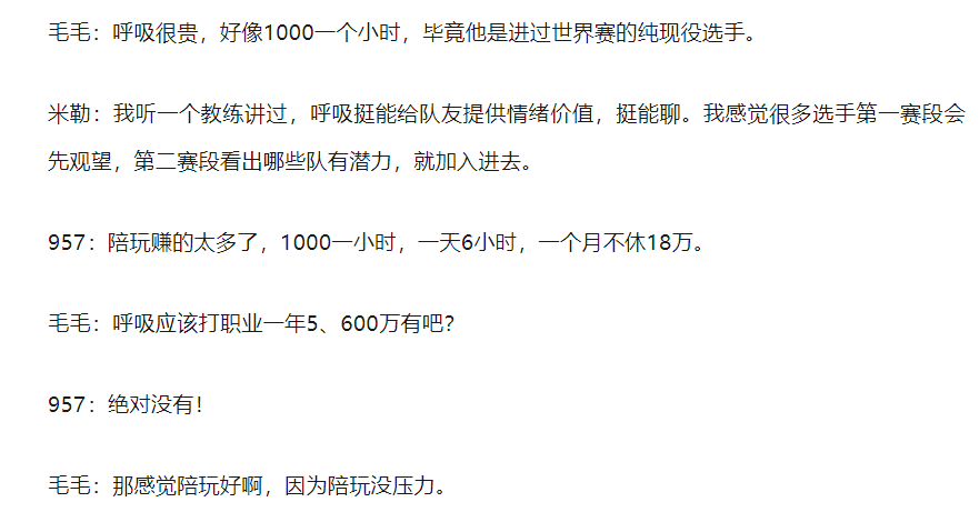 957说“第一赛段观望,第二赛段再进队”,其实正点出了很多老将的真实心态,所以,与其纠结18万这个数字准不准确,不如承认一个事实:以呼吸哥的履历、实力和性格,他做陪玩,日子确实不会差。