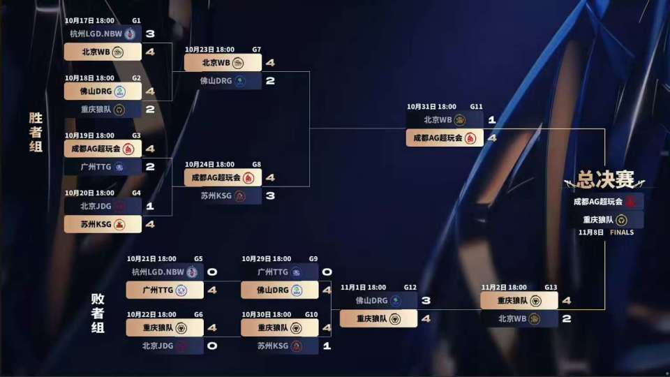 同样没有种子池,年总的八强双败淘汰是有交叉的。上半区的LGD,WB,DRG和狼队,LGD输了比赛之后不是和狼队交手,而是和下半区的TTG。再看本次挑杯,KSG,青训破军,WB和AG组成了死亡上半区,KSG和AG输了比赛之后还是走不出这个区,硬碰硬,结果KSG淘汰了。