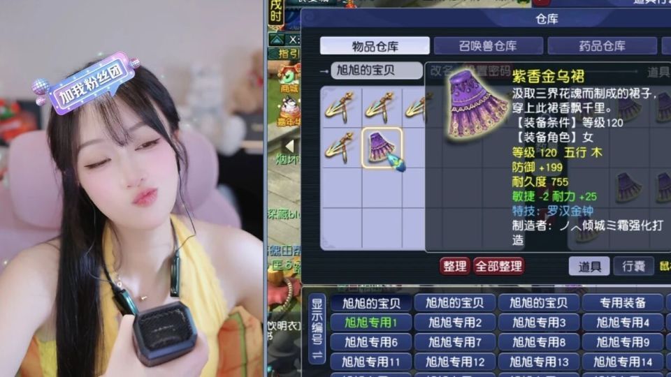 看青小丝的嘴都撇到天上去了,这个嘚瑟劲就知道出大货了,120级的女衣,防御+199,敏捷-2,耐力+25,特技是罗汉金钟,这个弹幕直接刷屏至少十头牛起,这运气好的也太吓人了!