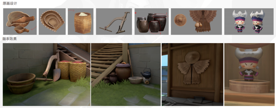 为了增加地图的丰富程度,制作组从现实中取材,复刻了苗寨村落里的水瓢、簸箕、蓑衣等物件。