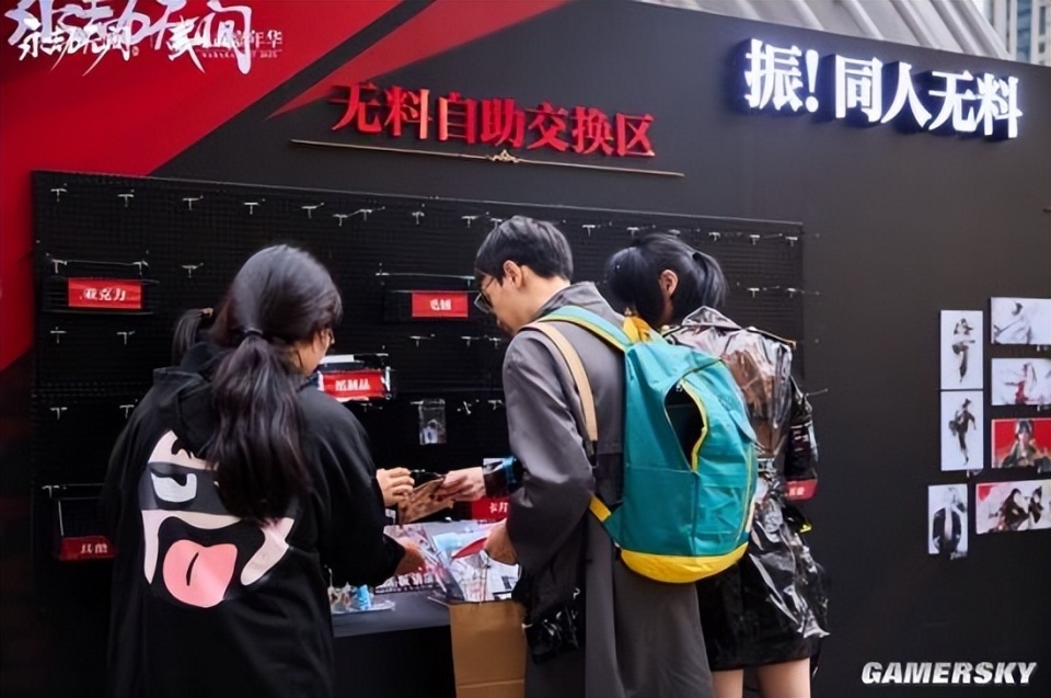 在官方周边贩售区的火爆人气外,本次活动中的同人无料展示区,则同样成为许多创作者与粉丝的宝藏角落。许多玩家在现场分发亲手制作的物料,传递共同的热爱与喜悦;而在展区中央,也同样设有专门的交换区与展示区,让这份自发的热情,在游戏外有了更多的交流空间。