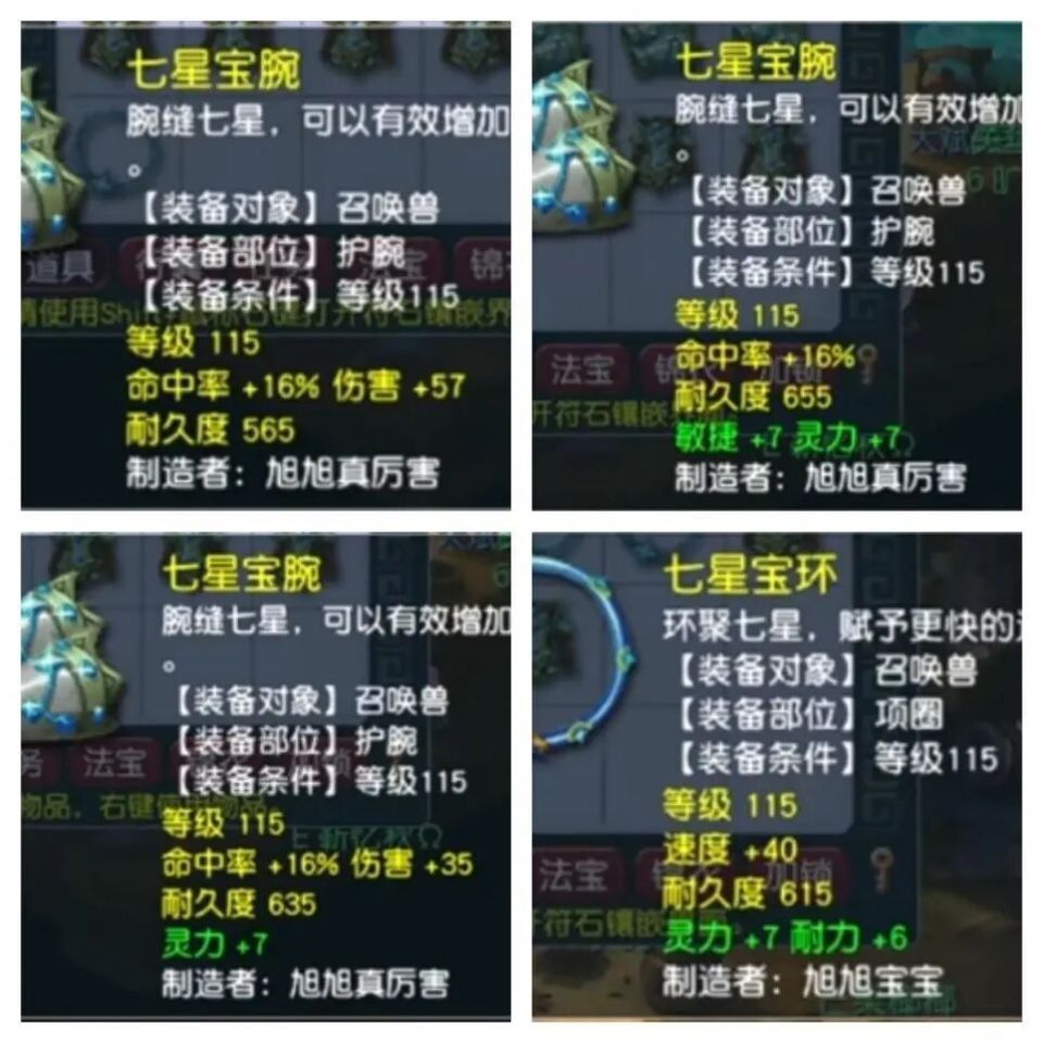 出了加57伤害的115级护腕,灵敏双加的115级的护腕,伤害+35灵力+7的115级护腕,耐力双加13的115级项圈!