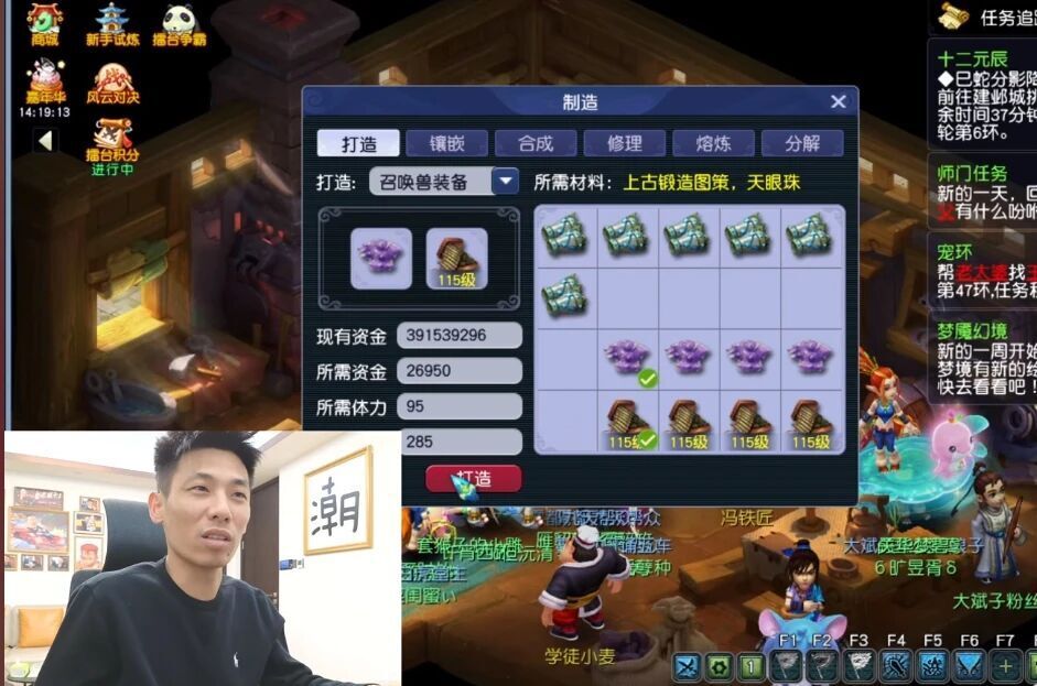 因为旭旭宝宝团队的宝宝装备还是有点短缺,所以最近宝哥都是一上齐天大圣的号就先去打造宝宝装备,一共打造了30件宝宝装备,看看有没有出什么好东西吧?