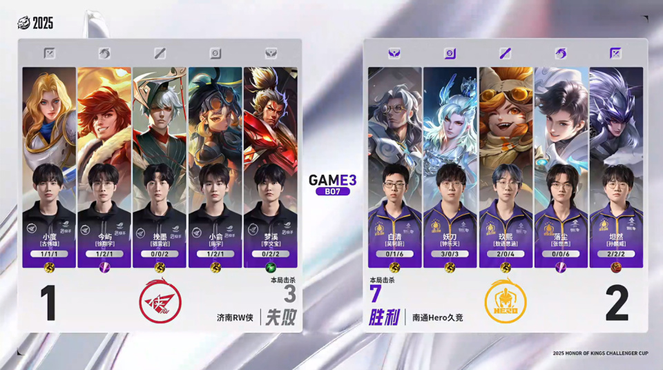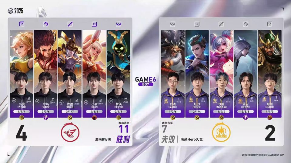 Hero少一个人的情况下想强行秒主宰,但伤害有点不够,RW众人追上来,妖刀抢到了龙,这波运气已经相当好了,但镜还是被哪吒大招飞了,还是小俞拿下击杀,hero连续掉点。最后的决胜团hero问题很大,坦然关羽绕后一个打三个,但完全没有队友能跟他一起冲,就导致坦然孤立无援先倒了。哪吒和姬小满留住hero四人,女娲大招伤害打满。镜换位去切公孙离也没有成功,在中后期团战的处理上,RW确实更胜一筹。最终RW打出团灭,4-2战胜hero,成功晋级胜者组决赛。