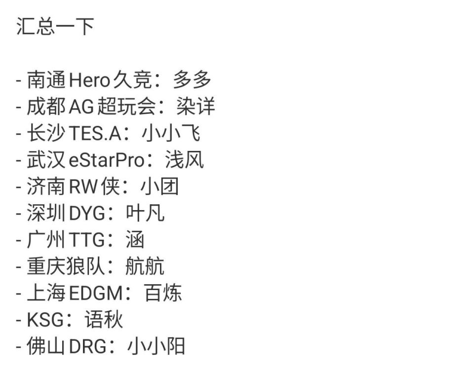 兄弟们有瓜主爆料这次选秀大会的自留签可以交易,也就是说各队可以把自留签选手拿出来拍卖,目前出现了十一队自留签瓜,hero是多多,AG是轩染,滔搏是小小飞,eStar是浅风,RW是小团,DYG是叶凡,TTG是涵,狼队是航航,EDG是白练,KSG是雨秋,DRG是小小阳,这里面最有名气的两名选手是小小阳和染详,不过目前看来染详应该是最强的青训打野,DRG估计很想用小小阳换染详,那样才能最大限度提高队伍上限。