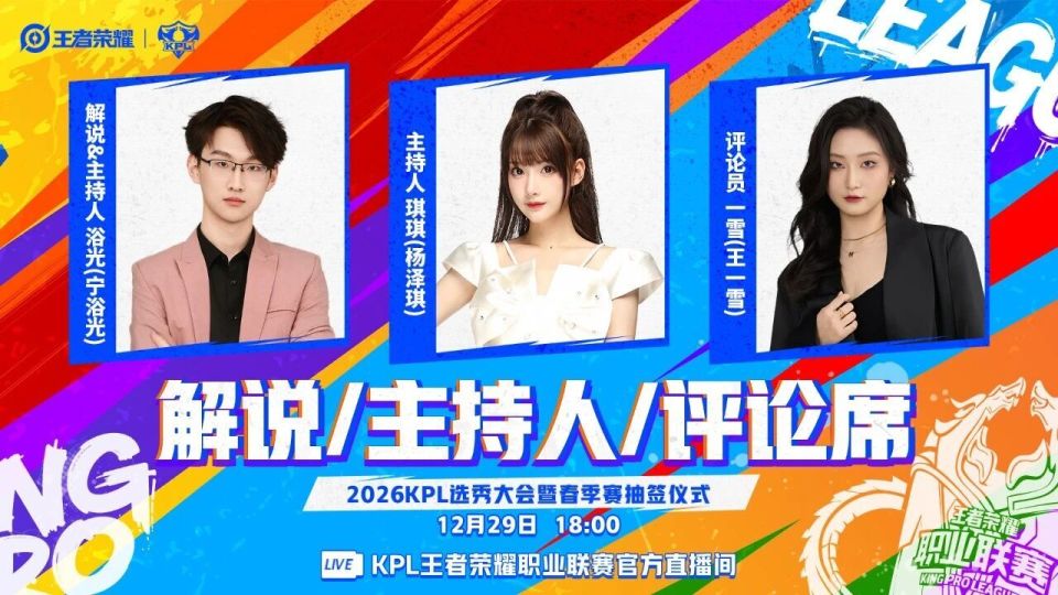 2026KPL选秀大会【节目单】【解说、主持人、评论席】及【2026KPL春季赛抽签仪式规则】公布!