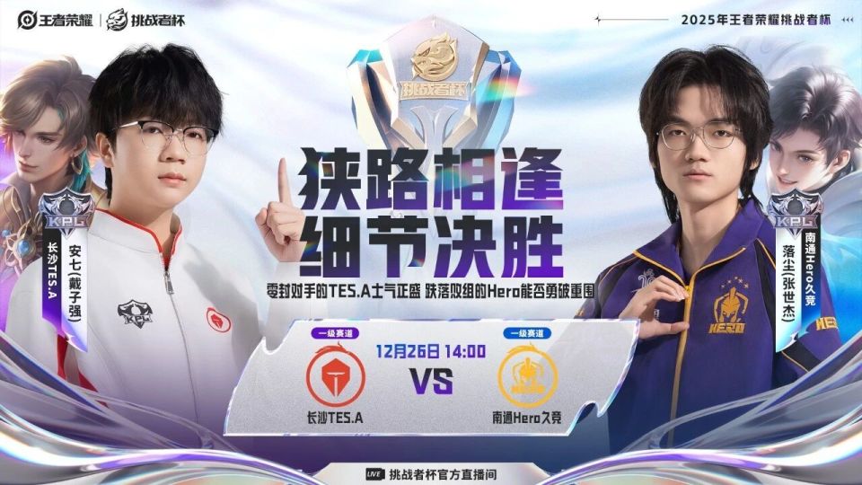 狭路相逢,细节决胜!是零封对手士气正盛的长沙TES.A延续上把的火热手感再下一城?还是南通Hero久竞及时调整,突破重围扳回一局?