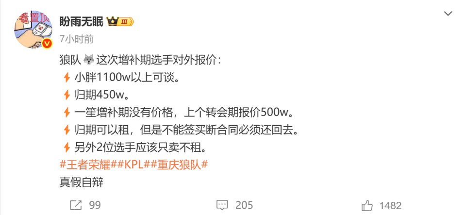 在春季赛开始前,还有一个增补期!在这个时间里,战队还可以进行人员的补充!而狼队,也被不少网友爆料选手的价格!