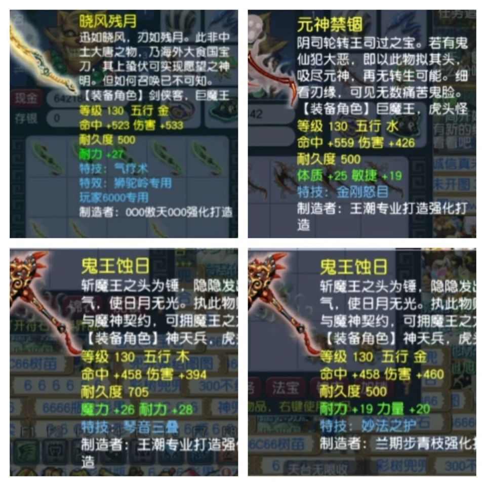 随后又接连收获:体敏双加44、携带特技“金刚怒目”的130斧头;伤害394、耐魔双加、附带“琴音三叠”的130锤子;以及耐力双加39、带有“妙法之护”的另一把130锤子。