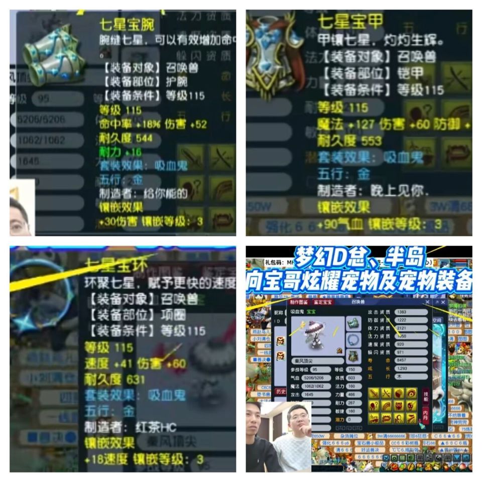 其中D总还炫耀他的14技能的耐攻的全红的吸血鬼,成长非常爆炸,高达1.293,其中展示了他的宝宝装备都是60伤害附近的宝宝装备,也非常好,但是我发现一个问题,前几天宝哥问老王能给他收点宝宝装备吗?老王说没货,只能自己鉴定,那D总的宝宝装备是怎么来的呢?:看来老王这话里,多少存着几分生意人的“艺术”啊,老王你不老实呀!