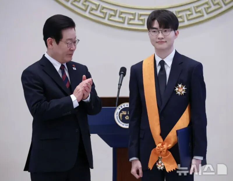 Faker获得韩国体育界最高荣誉勋章“青龙章”,总统李在明亲自颁发